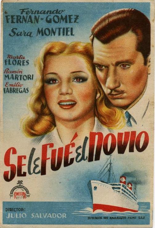 Se le fue el novio (Julio Salvador, 1945): Un problema burocrático impide a una joven viajar con su novio hacia Australia. En compensación, el Ministerio del Interior encarga a un funcionario que encuentre un nuevo novio para ella. Con esta disparatada premisa se inicia otra comedia romántica más de entre las muchas que se produjeron en la postguerra inspiradas en el modelo hollywoodiense. Sus lujosos ambientes aristocráticos no pueden disimular su pobreza expresiva, ni los actores salvar un guión cuyos disparates resultan más incompresibles que divertidos. Así pues, la cinta solo merece ser recordada por el protagonismo de la primeriza Sara Montiel junto al gran Fernando Fernán Gómez.