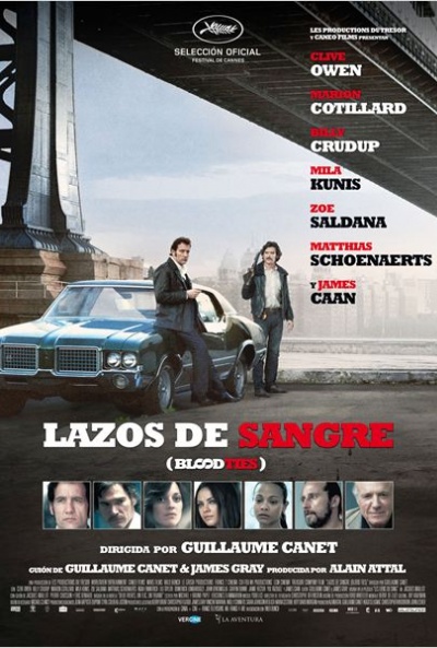 Lazos de sangre (Blood Ties) (Guillaume Canet, 2013): ¿Tienen importancia los lazos de sangre cuando un hermano es un criminal y el otro un policía? A esta pregunta parece responder esta reescritura del film Les liens du sang (Jacques Maillot, 2008) acometida por su anterior protagonista, Guillaume Canet, y el director James Gray, cuya película La noche es nuestra (2007) guarda evidentes semejanzas con esta. La ambientación setentera y los dilemas morales en torno a la familia y la ley vuelven a estar presentes, pero su buen reparto no consigue evitar la sensación de refrito. Canet copia mal a un Gray que ya hacía lo propio con Coppola.