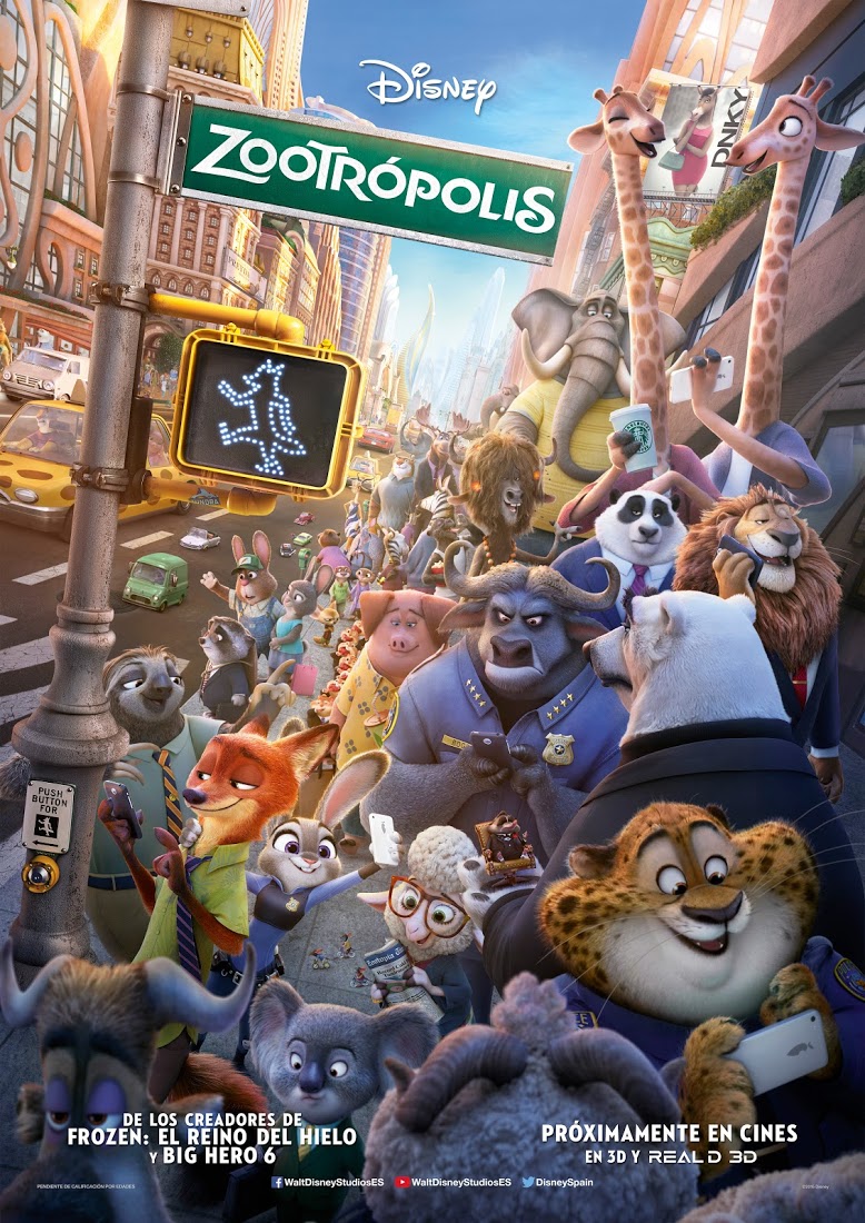 Zootrópolis (Zootropolis) (Byron Howard y Rich Moore, 2016): Una conejita desea escapar a su destino y ser la primera policía de su especie en Zootrópolis, la gran ciudad donde conviven en armonía todos los animales, incluidos los depredadores. Como en tantas películas de animación, estamos ante otra historia de superación personal de previsible final feliz. Sin embargo, como está servida en los moldes del cine policiaco con gran habilidad narrativa, contiene un evidente discurso metafórico sobre la multietnicidad de la sociedad norteamericana y nos deslumbra con un apabullante despliegue visual, la película descuella por encima de la media. Solo le falta un romance interanimal entre sus protagonistas.