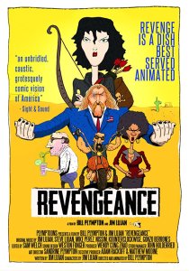 Revengeance (Jim Lujan y Bill Plympton, 2016): En la Norteamérica profunda de moteros, luchadores de wrestling y políticos populistas, un cazador de recompensas recibe el encargo de capturar a una joven que ha robado el oscuro secreto de un senador. Es una buena excusa argumental para que Plympton desarrolle su genuino estilo visual, con sus habituales contorsiones físicas y de perspectiva espacial que aquí se amoldan bien a los ásperos ambientes que transitan los personajes. La simplicidad de su argumento resta fuerza a una película moral y formalmente atrevida, solo apta para paladares dispuestos a degustar productos menos precocinados que los que suelen estrenarse con éxito.