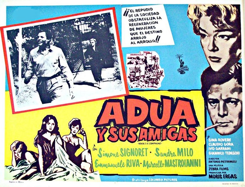 Adua y sus amigas (Adua e le compagne) (Antonio Pietrangeli, 1960): La época dorada del cine italiano fue tan inmensa que son incontables las películas que han caído en el olvido debido al descuido en su difusión fuera de su país. Esta ha sido adecuadamente restaurada y luce como un testimonio muy crudo y veraz de la prostitución en aquella época. Cuatro mujeres que ejercen la profesión en un prostíbulo que es cerrado por las autoridades se independizan y abren un negocio propio. Aunque no saben nada de restauración, ponen una trattoria que acabará funcionando bastante bien, pero a costa de endeudarse con un empresario que querrá que ejerzan de tapadillo su profesión original, siempre más rentable. Sus vicisitudes están narradas con gran convicción, sin caer en gratuitos sentimentalismos, sino con un punto justo de dramatismo salpimentado con algunos toques de comedia a pesar de su amargo desenlace. Es una película de tesis y genuinamente feminista, pero sin dar el sermón a los espectadores, sino mostrando una realidad social de forma narrativamente impecable. Simone Signoret imprime una gran dignidad a su personaje, la más veterana de las cuatro, la más consciente de su lugar en el mundo e incluso de su previsible destino final. Además, aparece el gran Marcello Mastronianni.