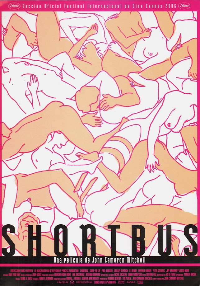 Shortbus (John Cameron Mitchell, 2006): El sexo como tema principal de una película siempre ha sido controvertido, pero también ha sido un eficaz reclamo comercial mientras no fuera demasiado explícito. La frontera con la pornografía estaba clara, pero desde los años noventa han proliferado los ejemplos de películas no pornográficas con sexo real entre sus actores. Esta tiene como protagonistas a una terapeuta sexual que nunca ha tenido un orgasmo, una pareja homosexual en crisis que prueba a formar un trío con otro joven, una dominatrix que nunca ha tenido una verdadera relación afectiva, etc. Todos ellos acuden a un local de fiestas donde se desarrollan orgias masivas y en el que esperan encontrar aquello que les falta. Hay acrobacias sexuales realmente sorprendentes, pero a diferencia de la pornografía no se pretende excitar al espectador. En realidad es un drama naturalista de personajes que buscan solucionar sus dudas existenciales. En ese sentido, es una obra narrativamente hablando bastante convencional que juega sus mejores bazas en la creación de una atmósfera festiva diferente, pero sus personajes no son todo lo interesantes que se pretende. La reducción de sus problemas a una cuestión sexual provoca una simplificación psicológica casi infantil en algunas escenas.